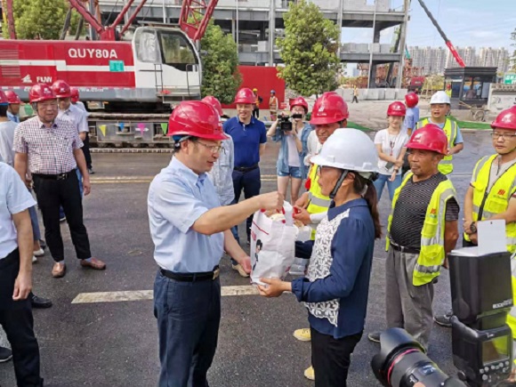 區(qū)、鎮(zhèn)領(lǐng)導高溫慰問工地一線建設(shè)者