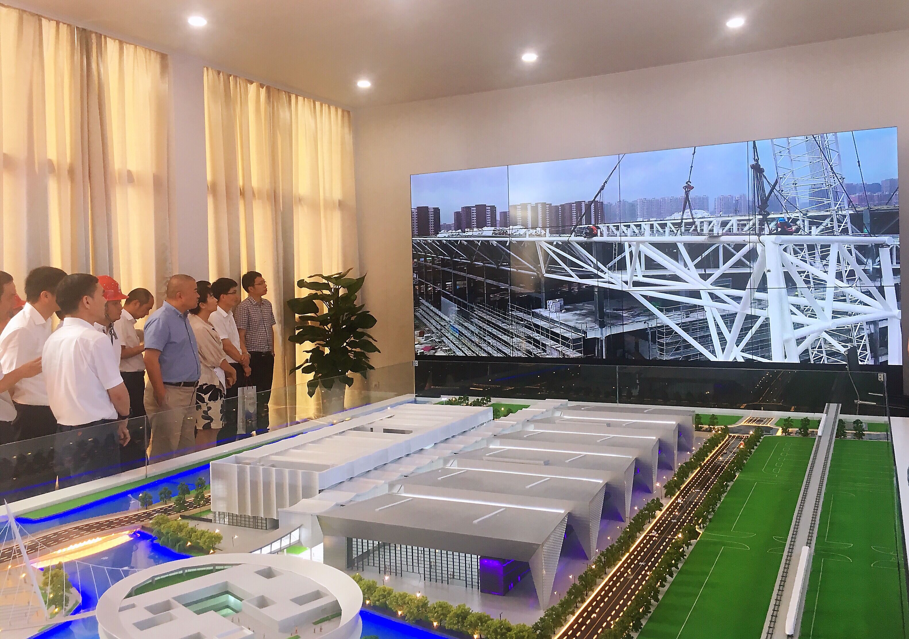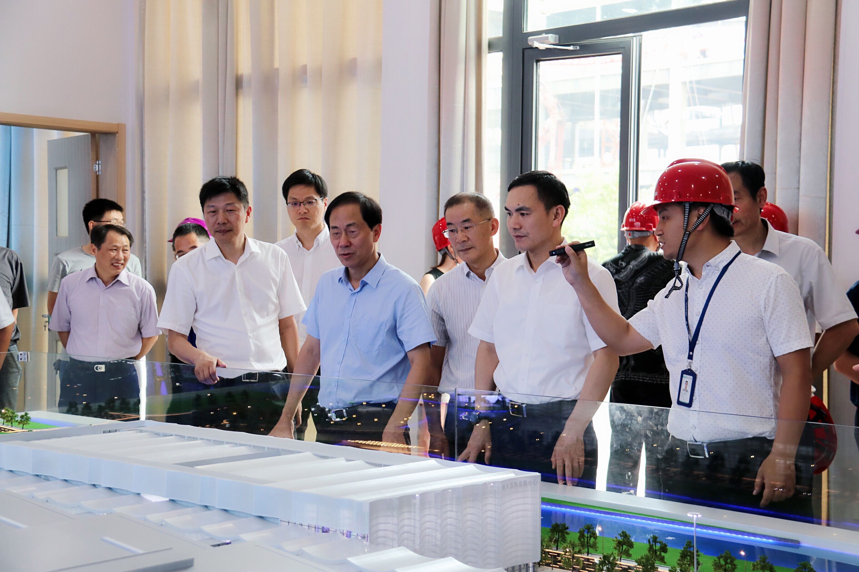 2019年7月24日下午,孫哲君副市長率隊一行調(diào)研紹興國際會展中心一期B區(qū)項目,柯橋區(qū)副區(qū)長諸劍明、建設(shè)集團(tuán)董事長滕建平、輕紡城集團(tuán)董事長葛梅榮及精工集團(tuán)董事長方朝陽等相關(guān)人員陪同調(diào)研。